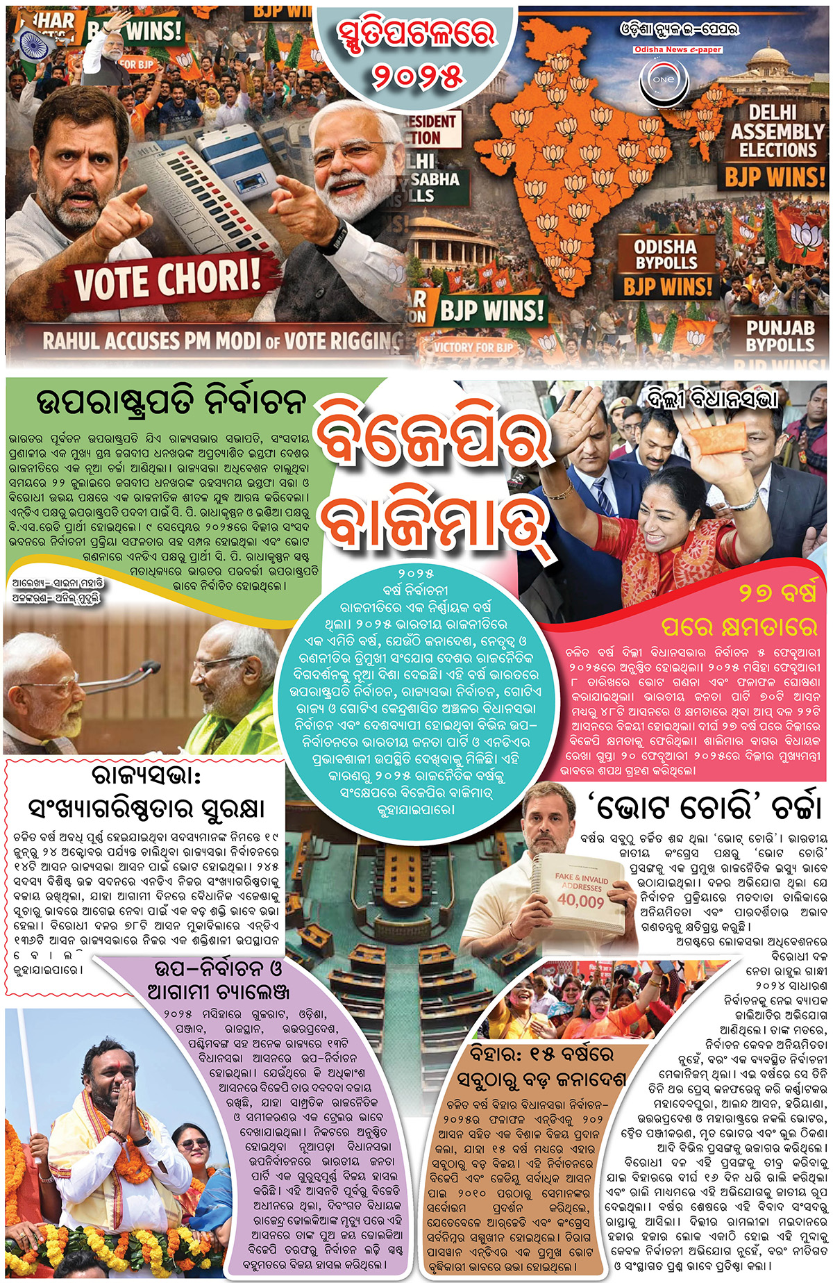 ଏ ମୁହୂର୍ତ୍ତର ଖବର : ନୂଆବର୍ଷ ପାଇଁ ପୁରୀରେ ପର୍ଯ୍ୟଟଙ୍କ ଭିଡ଼, ଶୃଙ୍ଖଳିତ ଦର୍ଶନ ଲାଗି ସ୍ୱତନ୍ତ୍ର ବ୍ୟାରିକେଟ୍ ବ୍ୟବସ୍ଥା | ନନ୍ଦନକାନନକୁ ନୂଆ ବର୍ଷ ଭେଟି, ୩ ଟି ଶାବକ ଜନ୍ମ ଦେଇଛି ଜୟଶ୍ରୀ | ହୋମଗାର୍ଡ ପରୀକ୍ଷା: ୧୦୨ ପୋଷ୍ଟ, ୪ ହଜାର ପରୀକ୍ଷାର୍ଥୀ | ଚୋରି କରୁଥିଲା ବେଳେ ଧରାପଡିଲା ଯୁବକ, ଇଲେକଟ୍ରିକ ପୋଲରେ ବାନ୍ଧି ଉତ୍ତମମଧ୍ୟମ ଦେଲେ ଗ୍ରାମବାସୀ | ମାଟି ତଳେ ଶ୍ରମିକଙ୍କ ମୃତଦେହ, ହତ୍ୟା କରିଥିବା ସନ୍ଦେହ | ବିଶ୍ବ ପ୍ରସିଦ୍ଧ ବରଗଡ଼ ଧନୁଯାତ୍ରା, ସରକାରଙ୍କ ପକ୍ଷରୁ ୧ କୋଟି ୫୦ ଲକ୍ଷ ଟଙ୍କା ପ୍ରଦାନ| ବାଲି ବୋଝେଇ ହାଇୱା ଧକ୍କା, ଯୁବକ ମୃତ | କୁକୁଡ଼ା ବୋଝେଇ ଟ୍ରକ୍ ଓ କାର୍ ମୁହାଁ ମୁହିଁ ଧକା, ୬ ଗୁରୁତର ଆହତ | ବାଲେଶ୍ଵର ହୋଟେଲରେ ଯୁବକଙ୍କ ମୃତ୍ୟୁ ଘଟଣା, ରହସ୍ୟମୟୀ ମହିଳାଙ୍କ ଟେର ପାଉନି ପୋଲିସ | ରାସ୍ତାରେ ବୁଲୁଛି କଲରାପତରିଆ ବାଘ, ଭୟଭୀତ ଗ୍ରାମବାସୀ | ମୌଳିକ ସୁବିଧାରୁ ବଞ୍ଚିତ ନୂଆ ବରିପାଳ ଗାଁ, ଲୋକେ କାଟୁଛନ୍ତି ଦୁର୍ବିସହ ଜୀବନ | ପାଟ୍ରୋଲିଂ ଭ୍ୟାନକୁ ପଛରୁ ପିଟିଲା କାର, ୪ ଯୁବକ ଅଟକ | ବନ ବିଭାଗ କର୍ମଚାରୀଙ୍କୁ କାଠ ମାଫିଆଙ୍କ ଆକ୍ରମଣ, ପୋଲିସର ତଦନ୍ତ ଆରମ୍ଭ | ପ୍ରବଳ ଶୀତରେ ଥରୁଛି ସାରା ରାଜ୍ୟ, ଆସନ୍ତା ୪ ଦିନ ପର୍ଯ୍ୟନ୍ତ ଭୀଷଣ ଶୀତ ପ୍ରବାହ ଜାରି | ସିମେଣ୍ଟ ବୋଝେଇ ମାଲଗାଡ଼ି ଟ୍ରେନ ଲାଇନଚ୍ୟୁତ, ନଦୀକୁ ଖସିଲା ଅନେକ ବଗି |ଭୂକମ୍ପ ଝଟକାରେ ଥରିଲା ତାଇୱାନ, ୭.୦ ତୀବ୍ରତାରେ ଥରିଲା ବଡ଼ ବଡ଼ ବିଲିଡିଂ | ଆଜି ଟ୍ରମ୍ପ-ଜେଲେନସ୍କିଙ୍କ ବଡ଼ ବୈଠକ, ରୁଷ-ୟୁକ୍ରେନ ଯୁଦ୍ଧ ଶେଷ ପାଇଁ ବ୍ଲୁ-ପ୍ରିଣ୍ଟ ପ୍ରସ୍ତୁତ! |