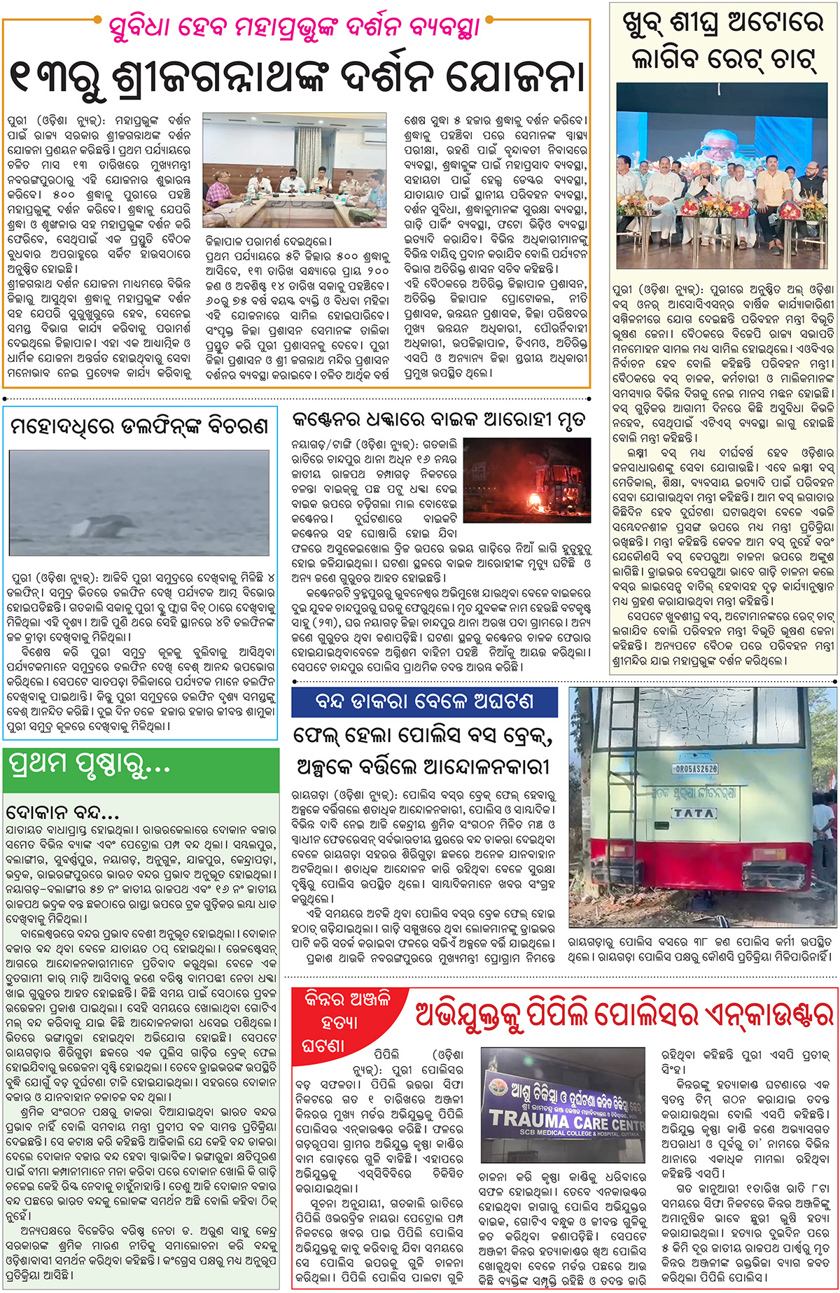 ଏ ମୁହୂର୍ତ୍ତର ଖବର : ପୀତବାସ ପଣ୍ଡା ହତ୍ୟା ମାମଲାରେ ଚାଞ୍ଚଲ୍ୟକର ତଥ୍ୟ, ପୋଲିସ ଚାର୍ଜ ସିଟର ଦୁଇଟି ଫର୍ଦ୍ଦରେ ଅଛି ଦୁଇ ମହିଳାଙ୍କ ବିସ୍ଫୋରକ ବୟାନ | ଭାରତ ବନ୍ଦ ବେଳେ ହଟହଟା ହେଲା ବର, ଭିଡ଼ ଯୋଗୁ ମଣ୍ଡପରେ ପହଞ୍ଚିପାରୁନାହାନ୍ତି | ଶ୍ରମିକ ସଙ୍ଗଠନ ପକ୍ଷରୁ ୧୨ ଘଣ୍ଟିଆ ଭାରତ ବନ୍ଦ ଡାକରା, ବିଭିନ୍ନ ସ୍ଥାନରେ ରାସ୍ତାରୋକ ଆନ୍ଦୋଳନ ଓ ବିକ୍ଷୋଭ ପ୍ରଦର୍ଶନ | ୱାର୍ଡ ମେମ୍ବରଙ୍କୁ ମିଳୁନି ଆବାସ ଯୋଜନା, ଦୁର୍ଦ୍ଦିନରେ ଦିନ କାଟୁଛନ୍ତି ଭାନୁମତି | ବ୍ରେକ୍ ଫେଲ୍ ହେଲା ପୋଲିସ ବସ୍, ଅଳ୍ପକେ ବର୍ତ୍ତିଲେ ଶତାଧିକ ଆନ୍ଦୋଳନକାରୀ | ଆନ୍ଦୋଳନକାରୀଙ୍କୁ ଧକ୍କା ଦେଲା କାର୍, ବାମପନ୍ଥୀ ନେତା ଗୁରୁତର | ବାଇକକୁ ପଛପଟୁ ଧକ୍କା ଦେଇ ଜଳିଗଲା କଣ୍ଟେନର, ୧ ମୃତ ଓ ଜଣେ ଗୁରୁତର | ପୁରୀ ପୋଲିସର ବଡ ସଫଳତା, କିନ୍ନର ହତ୍ୟା ଅଭିଯୁକ୍ତକୁ ଏନକାଉଣ୍ଟର | ବରଯାତ୍ରୀ ବାଣ ନିଆଁରୁ ଜଳିଗଲା ଘର, ଦମକଳ ବାହିନୀ ପହଞ୍ଚି ନିଆଁକୁ କଲା ଆୟତ୍ତ | କଟକରେ ଭାରତ ବନ୍ଦ ଡାକରା, ନେତାଜୀ ବସ ଟର୍ମିନାଲରେ ଦେଖିବାକୁ ମିଳିଛି ପ୍ରଭାବ | ପାଟନା ସିଭିଲ କୋର୍ଟକୁ ବୋମାରେ ଉଡ଼ାଇବାକୁ ଧମକ, ପପୁ ଯାଦବଙ୍କର ହେବାକୁ ଥିଲା ଆଜି ଶୁଣାଣି | ପ୍ରଥମ ୧୦୦% ଦୃଷ୍ଟିହୀନ ମହିଳା ବିଚାରପତି ଥାନ୍ୟା ନାଥନ, ବର୍ଷେ ହେଲା କରୁଥିଲେ ଅଭ୍ୟାସ | ବାଂଲାଦେଶରେ ଆରମ୍ଭ ହୋଇଛି ମତଦାନ, ନିର୍ବାଚନ ଦୌଡ଼ରେ ନେତୃତ୍ୱ ନେବ କିଏ? |