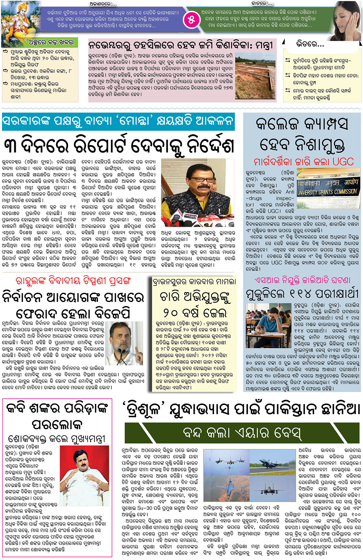 ୧୫ ଫୁଟ ଲମ୍ବର ଅହିରାଜ ଉଦ୍ଧାର, ସାପକୁ ଦେଖି ଭୟଭୀତ ହେଲେ ପରିବାର ଲୋକେ | ଆଜି ଭକ୍ତ ପାଇବେ ଲିଙ୍ଗରାଜଙ୍କ ମହାପ୍ରସାଦ, ୨୪ ଘଣ୍ଟା ଧରି ଉପବାସ ରହିବା ପରେ ଆଜି ସବୁ ସ୍ବାଭାବିକ | ଘର ଆଗରୁ ଡିକି ଭାଙ୍ଗି ୧୦ ଲକ୍ଷ ଟଙ୍କା ଲୁଟିନେଲେ ଦୁର୍ବୃତ୍ତ, ଅଭିଯୋଗ ପରେ ଘଟଣାସ୍ଥଳରେ ତଦନ୍ତ କରୁଛି ପୋଲିସ | ଆଜି ବି ଉପବାସରେ ପ୍ରଭୁ ଲିଙ୍ଗରାଜ, ସାହାଣ ମେଲା ଓ ସୂର୍ଯ୍ୟ ପୂଜା ପରେ ନୀତିକାନ୍ତି ବନ୍ଦ | ଘରୋଇ ଯାତ୍ରୀବାହୀ ବସ୍ କୁ ଧକ୍କା ଦେଲା ଟ୍ରକ, ୩ ଯାତ୍ରୀ ଗୁରୁତର | ଲଗାଣ ବର୍ଷାରେ ମନ୍ଦିର ଉପରେ ଖସିଲା ପଥର, ଶ୍ରଦ୍ଧାଳୁଙ୍କର କିଛି କ୍ଷୟକ୍ଷତି ହୋଇନଥିବା ନେଇ ସୂଚନା | କରଞ୍ଜିଆରେ ମହାବଳ ଆତଙ୍କ, ବାଘର ପାଦ ଚିହ୍ନ ଦେଖି ଲୋକେ ଭୟଭୀତ | ଦୁର୍ବଳ ହୋଇଛି ବାତ୍ୟା ମନ୍ଥା, ଆସନ୍ତା ୨ ଦିନ ପର୍ଯ୍ୟନ୍ତ ରାଜ୍ୟରେ ଲାଗିରହିବ ବର୍ଷା | ଆମେରିକା ରାଷ୍ଟ୍ରପତି ଟ୍ରମ୍ପଙ୍କ ବଡ଼ ଘୋଷଣା, ପୁଣି ପରମାଣୁ ଅସ୍ତ୍ର ପରୀକ୍ଷଣ ଆରମ୍ଭ କରିବାକୁ ନିର୍ଦ୍ଦେଶ | ଟ୍ରମ୍ପଙ୍କୁ ଭେଟିବେ ଜିନପିଙ୍ଗ, ୬ ବର୍ଷ ପରେ ଦକ୍ଷିଣ କୋରିଆ ବୁସାନରେ ହେବ ଆଲୋଚନା |